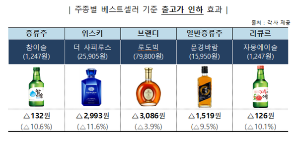 하지만 이번 출고가 인하 조처로 인한 소비자들의 체감은 거의 없을 것으로 보인다. 하이트진로는 이미 소주 출고가를 7%정도 올린 탓에 이번 조처로 기대할 수 있는 인하 폭은 54원에 불과하다.