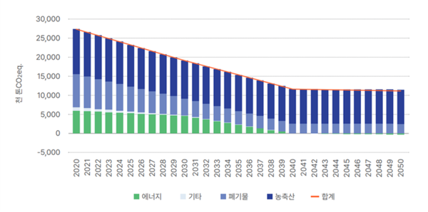 특히 2040년부터 에너지 부문에서 음수의 배출량이 필요한 것으로 분석됐다. 이는 2040년 이후에는 에너지 부문의 메탄을 음(-)의 배출, 즉 국내 메탄 배출량을 ‘제로(0)’로 만드는 것으로는 모자라 해외에서 배출되는 메탄까지 감축해야 한다는 것이다.