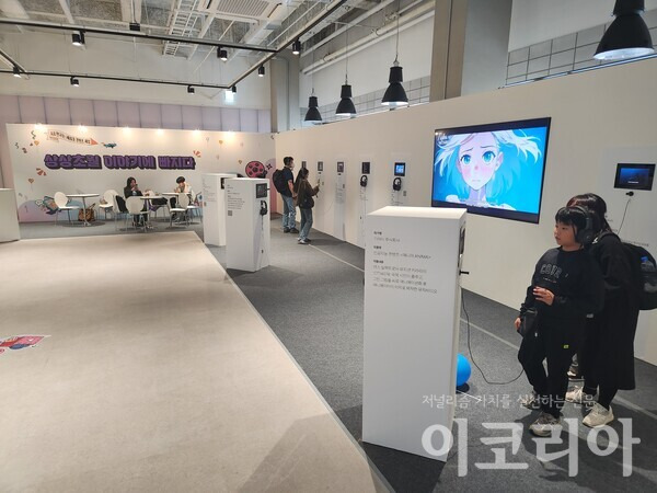 <이코리아>는 페스티벌이 개최된 31일 더 플라츠의 전시공간을 방문해 살펴봤다. 전시·체험 공간에서는 AI를 활용한 다양한 장르의 120여 개 콘텐츠를 ▲(아트) 꿈의 경계를 넘다 ▲(버추얼아이돌 및 음악) 또다른 나에게 열광하다 ▲(인터랙티브) 몰입 세계로 여행하다 ▲(영상) 상상초월 이야기에 빠지다 ▲(게임) AI와 함께 세계정복 ▲(웹툰) 터널 증후군은 없다 등 6개 이야기 테마로 나누어 전시를 진행한다.