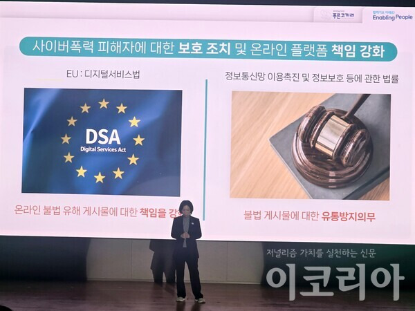 이어 “학생들에게 형사처벌보다 더 무서워할 만한 것이 사이버공간에서의 격리”라며 “새로운 사회적 격리 조치처분의 입법을 생각해 봐야 한다. 게시물에 대한 접근 차단, 삭제 조치에 그칠 것이 아니라 가해자에 대한 계정 정지라는 강력한 조치 마련도 검토해야 할 것”이라고 제언했다.
