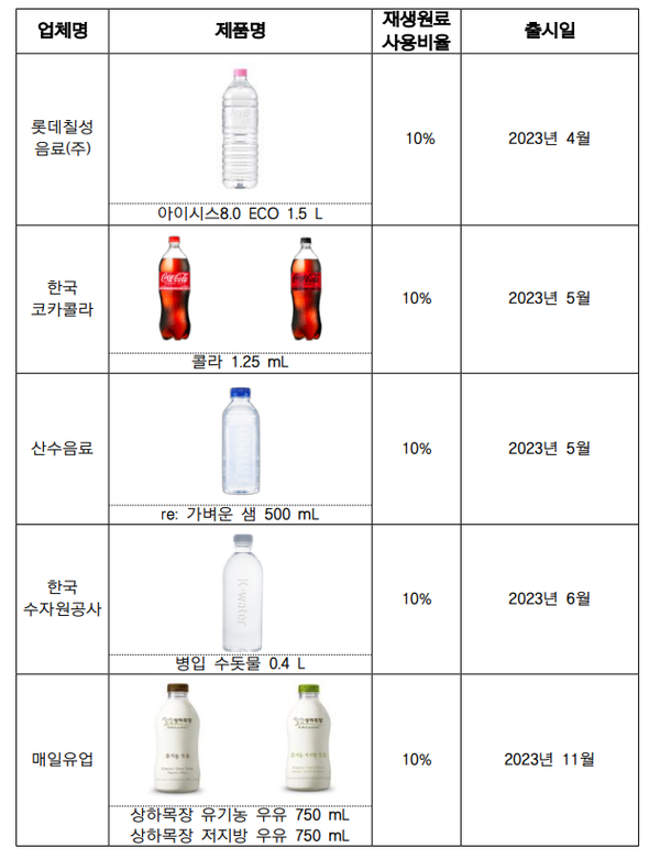 또 올해 5월 환경부, 식품제조업체, 식품용기 재생업체 등과 ‘투명페트병 순환체계 구축을 위한 업무협약’을 체결해 물리적 재생원료의 생산과 사용을 확대하기 위한 노력을 지속하고 있다.