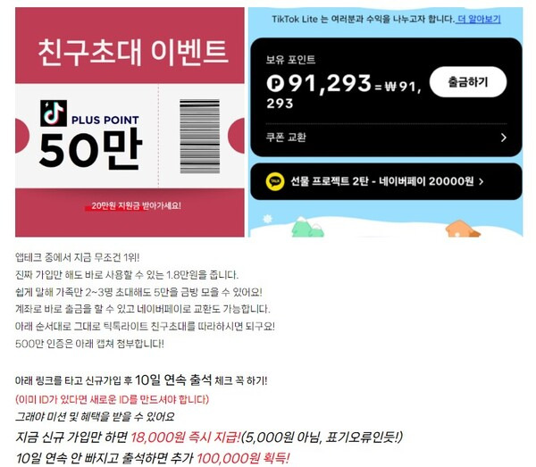 초대에 응한 친구가 열흘간 앱에 매일 출석하면 가입을 독려한 사람과 신규로 가입한 사람 모두 포인트를 받을 수 있도록 하고, 20분마다 앱을 열거나 숏츠를 시청하면 포인트가 적립된다. 모은 포인트는 은행 계좌로 송금받거나 기프티콘으로 교환할 수 있다.
