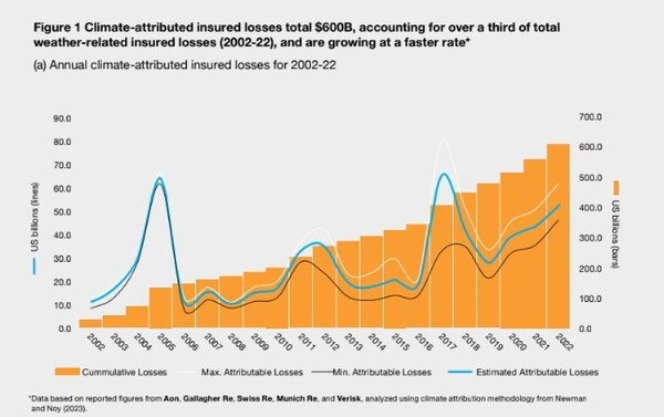 [사진-연도별 기후변화로 인한 보험 손실 추이, 출처-인슈어아워퓨처]