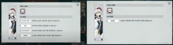 유료로 판매되는 상품인 스킨에서도 표기 오류가 발생했다. 1만 9,500원에 판매되는 '캐롤릭' 캐릭터의 스킨 '스프린트 래빗'에 각종 특수 효과와 상호 작용이 포함되어 있다고 표기되어 있었으나 실제로는 포함되어 있지 않았으며, 이후 패치를 통해 수정되었다.