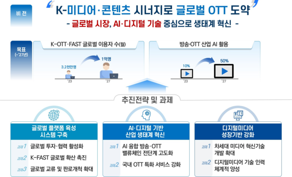 과기정통부는 OTT와 FAST(광고기반 무료텔레비전) 산업의 혁신 및 성장을 위해 ▲글로벌 플랫폼 육성 시스템 구축 ▲AI·디지털 기반 산업 생태계 혁신 ▲디지털미디어 성장 기반 강화를 포함한 3대 전략을 제시했다.