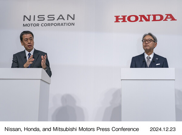 혼다의 미베 도시히로 사장과 닛산의 우치다 마코토 사장은 지난 23일(현지시간) 일본 도쿄에서 기자회견을 열고 이러한 내용의 경영 통합 추진 계획을 발표했다. 기자회견에는 미쓰비시자동차의 가토 다카오 사장도 함께 자리했으며, 지주회사 사장은 혼다 측에서 맡기로 합의했다. 닛산이 최대 주주인 미쓰비시의 통합 참여 여부는 내년 1월 말까지 확정될 전망이다.