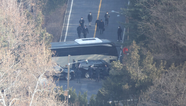 공수처의 윤석열 대통령에 대한 체포영장 집행이 중지된 3일 오후 서울 용산구 한남동 대통령 관저에서 관계자들이 철수하고 있다. 사진=뉴시스