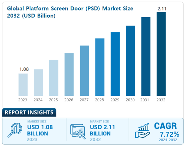 연평균 성장률(CAGR)은 7.72%에 달하며, 특히 도시화가 빠르게 진행되는 아시아 지역이 주요 성장 동력으로 작용하고 있다는 평가다. 보고서는 스크린도어가 승객 안전을 보장할 뿐 아니라 혼잡 시간대 승객 흐름을 효율적으로 관리하고, 소음 감소 및 역내 환경 개선에도 기여한다고 짚었다.