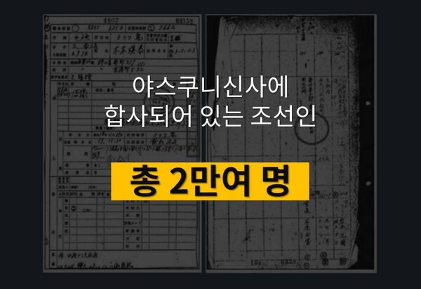 야스쿠니 신사는 침략전쟁에서 사망한 일본 군인들을 “천황을 위해 싸우다 죽었다”라며 신으로 만들어 합사한 곳이다. 일본 정부는 자국민에게는 합사 사실을 알리고 원호금을 지원하며 전사자들을 받들었지만, 조선인 피해자에 대해서는 유족에게 합사 사실을 전혀 알리지 않았고, 어떠한 배상도 하지 않았다.