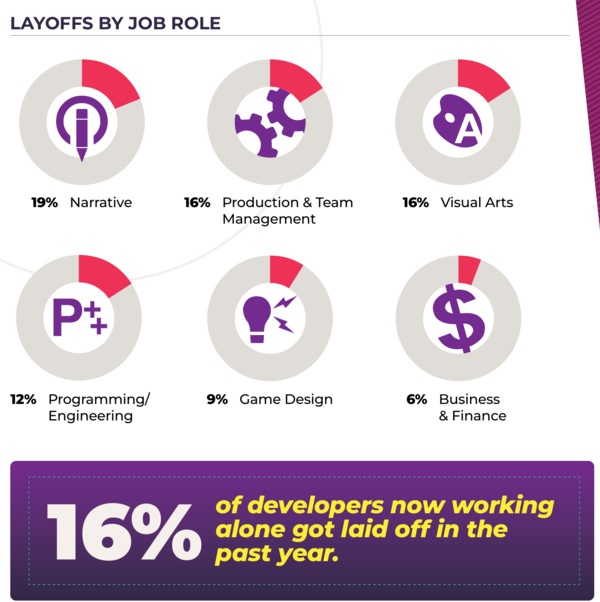 보고서에 따르면, 지난 1년간 글로벌 게임 개발자 중 11%가 해고를 경험했으며, 이 중 19%는 스토리텔링 관련 직군이 가장 큰 영향을 받은 것으로 나타났다. 해고 이유로는 구조조정(22%), 매출 감소(18%), 시장 변화(15%) 등이 꼽혔으며, 19%는 구체적인 이유조차 제공받지 못했다. 보고서는 이는 최근 게임업계에서의 투자 축소와 재정적 불확실성을 단적으로 보여주는 사례라고 짚었다.