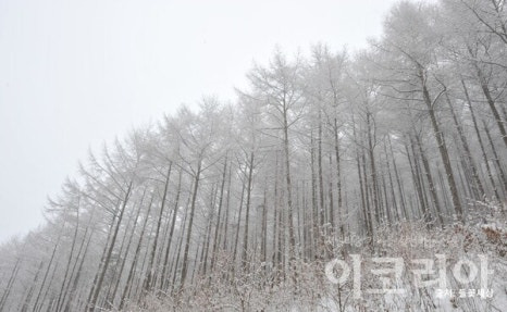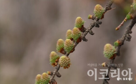 [이코리아] 아직은 하얀 눈이 내리는 추운 계절을 보내고 있다. 하지만 절기상으로는 벌써 봄의 시작을 알리는 입춘이 되었다. 한겨울의 숲은 앙상한 가지들로 적막하지만, 소나무나 잣나무처럼 푸른 잎을 지닌 침엽수들도 있어 겨울 풍경에 생기를 더한다. 그러나 침엽수 중에서도 가을이 되면 잎을 떨구고 겨울을 보내는 나무가 있는데, 바로 오늘 소개할 잎갈나무이다.