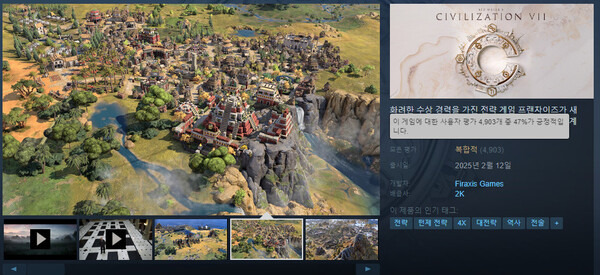 한편 12일 출시를 앞두고 예약 구매자를 대상으로 사전 플레이가 시작된 '문명 7'은 정식 출시되기도 전에 예약 구매자들 사이에서 부정적인 평가를 받고 있다.