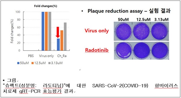 당시 일양약품은 보도자료를 통해 “자사의 코로나19 바이러스 치료 후보물질 검증을 위해 고려대학교 의과대학 생물안전센터 내 ‘생물안전 3등급(BSL-3)’ 시설 연구팀에 의뢰한 결과에서 탁월한 유효성을 확인했다”라며 “슈펙트 투여 후 48시간 내 대조군 대비 70%의 코로나19 바이러스 감소와 HIV 치료제 ‘칼레트라’ 및 독감치료제 ‘아비간’과 비교해 우월한 효능을 확인했다”고 설명했다.