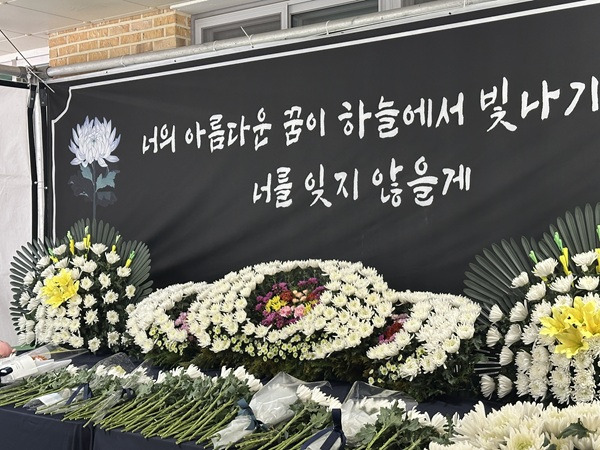 12일 오후 초등학교 피살 사건이 발생한 대전 서구 관저동의 한 초등학교 1층에 김하늘(7)양을 추모하는 합동분향소가 설치돼 있다. 사진=뉴시스