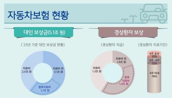 이에 2023년 1월 금융감독원은 가벼운 사고에 대한 막대한 치료비 등의 보험금 누수를 줄이기 위해 경상환자(염좌 등의 부상을 입은 부상 급수 12급~14급의 피해자)의 경우, 4주까지만 치료 기간을 원칙적으로 인정하고 4주 초과 시에는 그때마다 진단서 등의 추가 발급을 통해서 명시된 기간에 대해서만 치료비 지불보증을 해주 는 것으로 약관을 변경했다.