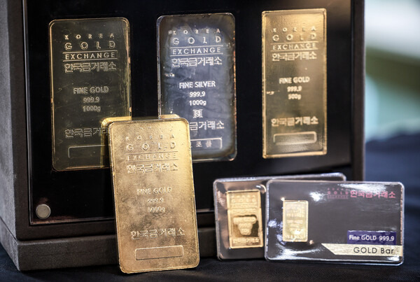 서울 종로구 한국금거래소 종로본점에 전시용 골드바가 전시되어 있는 모습. 사진=뉴시스