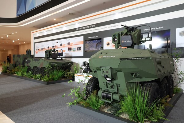 이날 한화 방산3사는 육해공 유무인체계를 통합 운용하는 ‘MUM-T 솔루션’ 청사진도 제시했다. 한화는 무인차량 외에도 한화시스템의 무인수상정과 저궤도위성 기반 다계층 통합 통신체계, 한화오션의 무인전력 지휘통제함 등 다양한 유무인 복합체계를 보유했다. 저궤도 위성망과 지상망이 통합된 네트워크로 우주에서 관측된 전장 상황을 각 전장의 무기체계와 공유해 다양한 통합 작전이 가능하다.
