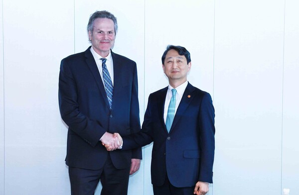 안덕근 산업통상자원부 장관(오른쪽)이 지난 25일 5시 서울 중구 플라자호텔에서 마이크 던리비(Mike Dunleavy) 미국 알래스카주 주지사와 면담을 가졌다. 사진=산업통상자원부