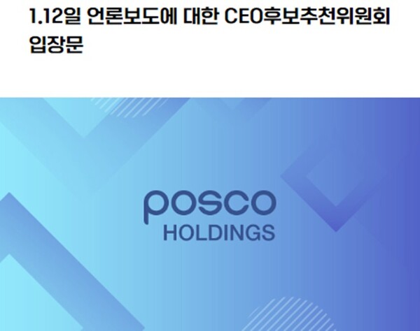 다만 “포스코 그룹의 새 회장 선출을 위한 엄정한 심사 작업을 진행하는 중요한 시기에 후보추천위원회의 신뢰도를 떨어뜨려 이득을 보려는 시도는 없는지도 경계할 필요가 있다”며 “새 회장을 선출하는 중차대한 임무를 완수하기 위해 끝까지 최선을 다할 것이라고 다짐했다”고 밝혔다.