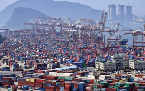 사진은 수출 컨테이너가 쌓인 부산항 모습. 사진=뉴시스