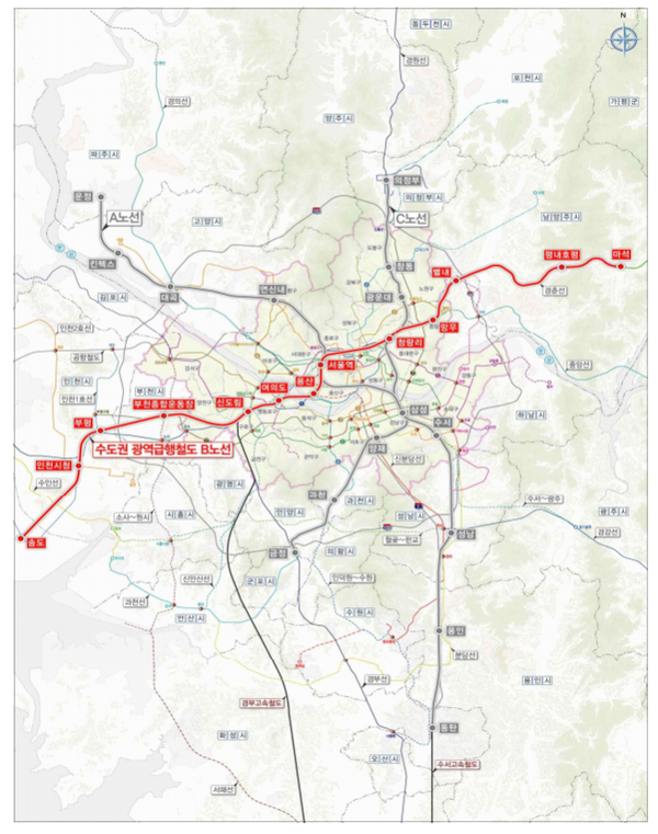 수도권광역급행철도(GTX)-B 노선도. 자료=국토교통부