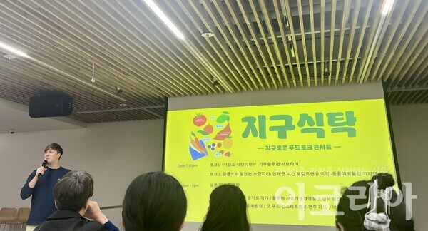 [이코리아] 기후위기 시대에 지속가능한 식단의 중요성을 알리고 저탄소 식생활 실천 방안을 논의하기 위한 ‘지구식탁 토크 콘서트’가 16일 성황리에 개최됐다. 이번 행사는 국내 기후 싱크탱크인 기후솔루션이 주최했으며, 기업의 CSV(공유가치창출) 전략, 대체 단백질 연구 개발, 로컬 브랜딩, 친환경 농산물 소비 활성화, 윤리 소비 등 기후와 식탁을 연결하는 다채로운 주제들이 심도 있게 논의됐다.
