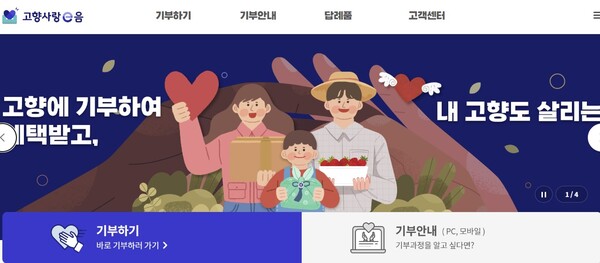 ‘고향사랑기부제’는 개인이 자신의 주소지가 아닌 고향이나 다른 지방자치단체에 연간 500만원 한도 내에서 기부하고 세액공제 혜택과 기부액의 30% 이내의 답례품을 받는 제도다. 지방 재정확충, 지역 경제 활성화를 위해 2023년 1월 도입했다.