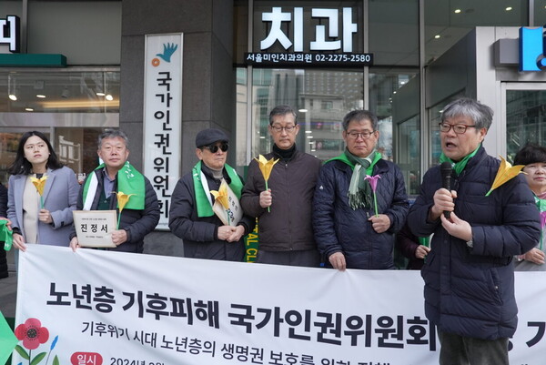 기후단체 ‘60+기후행동’과 기후솔루션은 이날 인권위 앞에서 기자회견을 열고 “기후변화는 노년층에게 목숨을 잃을 수 있는 시급하고 심각한 위협”이라며 온실가스 감축목표 상향, 실태 조사 등의 대책을 정부에 요구했다.