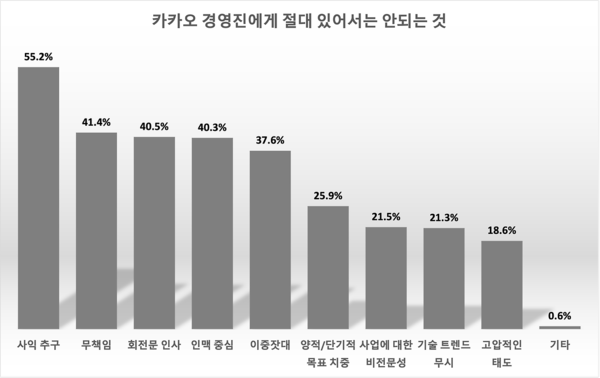 크루 유니언 관계자는 6일 <이코리아>와의 통화에서 "공교롭게도 이번 인사가 발표된 4일은 크루 유니언이 보도자료를 통해 ‘우리가 원하는 경영진’ 설문조사 결과를 발표한 시점과 맞물린다."라며 "발표된 설문조사 결과에 따르면 노조원들은 경영진에게 절대 있어서는 안 될 요소로 ‘회사의 성장보다 경영진 보상만 극대화하는 사익추구(55.2%)’, ‘불투명하고 원칙 없는 회전문 인사(40.5%)’를 뽑았다. 이번 인사의 경우 ‘먹튀 사태’로 대표되는 사익 추구와 ‘회전문 인사’ 모두에 해당하는 경우다.”라고 지적했다.