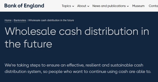 영국의 중앙은행인 영란은행은 홈페이지에 ‘wholesale cash distribution in the future’ 섹션을 신설하여 현금 없는 사회 진전에 따른 대응 방안 관련 논의 내용을 게시하고 있다.
