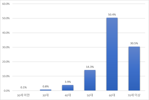 업력이 높은 기업일수록 고령화 문제는 더욱 심각하다. 중기중앙회에 따르면, 업력 30년 이상 중소기업의 대표자 중 60세 이상이 차지하는 비중은 80.9%였으며, 70세 이상도 30.5%에 달하는 것으로 집계됐다.