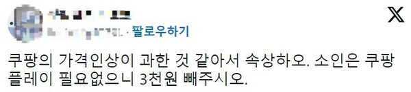 그러나 쿠팡의 갑작스런 인상 소식은 구독자들은 당황하게 하는 모양새다. 누리꾼들은 기존가격을 유지하면서, OTT 혜택 등은 분리해 가격을 다양하게 제시해 달라고 요청하기도 한다.