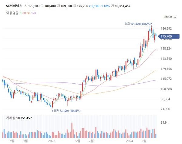 증권업계는 반도체 업황 개선을 전망하면서 SK하이닉스의 주가 상승은 이제 시작이라는 분석을 내놓고 있다. 지난 4월 12일엔 장중 19만 1400원까지 치솟으며 연일 최고가를 갱신했다. SK하이닉스 주가가 19만 원을 돌파한 건 이번이 처음이다.