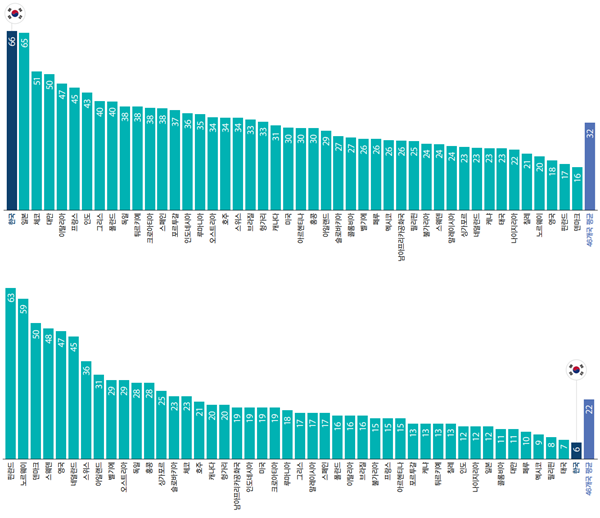 반면 뉴스 웹사이트 및 앱에 직접 접속한다는 응답자는 6%에 불과했는데, 이는 46개국 평균인 22%의 3분의 1에도 미치지 못하는 수준이다.