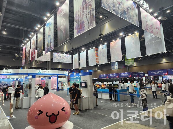 40규모 부스의 전시관으로 참가한 글로벌 게임 기업 그라비티는 PC 및 콘솔 게임, 모바일 게임, 버츄얼 유튜버 K-Tuber 등 총 16종의 전시물을 선보였다.