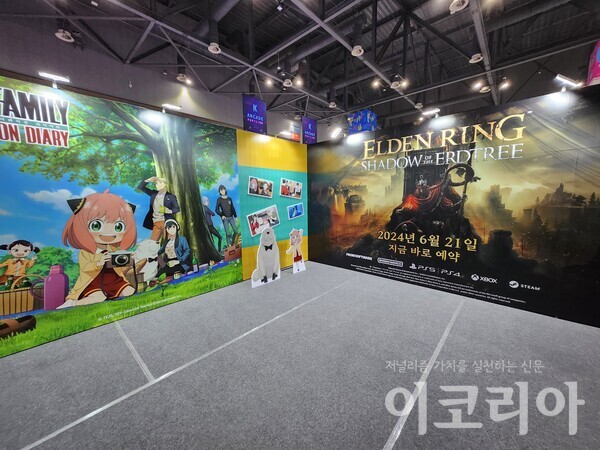 행사장 입구에 들어서면 반다이남코 엔터테인먼트 코리아의 부스가 관람객들을 맞이한다. 반다이남코의 부스에서는 오는 6월 21일 출시를 앞둔 액션 RPG ‘엘든 링:황금 나무의 그림자’의 특별 전시를 비롯해 ‘드래곤볼 스파킹! 제로’의 포토존, 가정용 건담 게임 최신작 ‘건담 브레이커 4’의 건담 전시존 등 다양한 전시가 관람객들의 시선을 끈다.