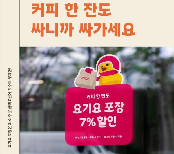 요기요 담당자는 <이코리아>와의 통화에서 “요기요는 엔데믹 이후, 칙업 주문 트렌드를 반영해 더욱 저렴하게 음식을 즐기고자 하는 고객들에게 포장할인을 제공하고 있다”라며 “계절에 따라 피크닉 수요가 높기 때문에 이를 점주나 고객 모두가 누릴 수 있도록 7% 포장 할인을 혜택으로 드리고 있다.”고 답했다.