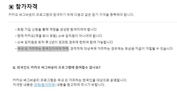 한 독일 프로그래머가 링크 하나로 계정을 훔칠 수 있는 카카오톡의 취약점을 발견해 제보했으나, 외국인이라 취약점 보상을 받을 수 없었다고 밝히며 카카오 등 기술기업들이 운영하는 '버그바운티' 제도가 누리꾼들에게 주목받고 있다.