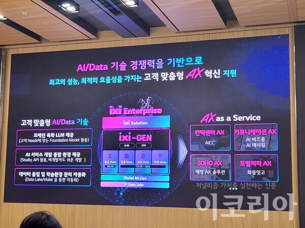 다음으로 AI 응용서비스의 기술력을 좌우하는 '플랫폼'과 '데이터' 영역에서는 LG유플러스의 특화 sLLM ‘익시젠’이 구심점 역할을 하게 된다. 고객 최적화와 비용 효율성 등 강점을 앞세운 B2B 전용 AI 솔루션 '익시 엔터프라이즈(ixi Enterprise)'로 차별화된 경쟁력을 확보한다는 계획이다.