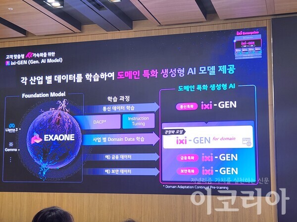 ‘데이터’ 영역에서는 고객사 업종별 특화된 AI 서비스를 제공하고, 여기서 확보한 데이터를 AI가 다시 학습해 전문성을 강화하는 선순환 구조를 만들어 경쟁력을 높인다. 기업 고객 입장에서는 익시젠의 경량화된 모델을 빠르게 적용한 이후 추가 데이터를 지속 학습하며 AI 서비스의 성능을 높여갈 수 있다.