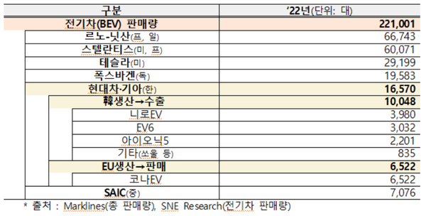 반면 올해까지는 보조금을 받았던 기아의 니로 EV와 쏘울EV는 전량 국내에서 생산해 유럽으로 수출되고 있는 점이 고려돼 이번 지급 대상에서 제외됐다. 산업통상자원부에 따르면 한국에서 생산해 프랑스로 수출되는 니로EV는 지난해 약 4000대였다.