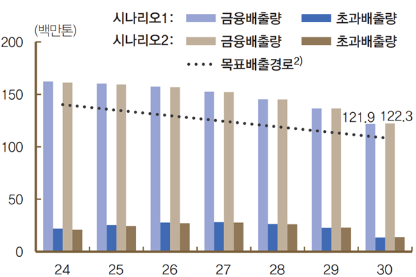 은행의 금융배출량 감축 속도가 느린 점도 문제다. 한은이 국내은행의 금융배출량 감축 시나리오를 분석한 결과에 따르면, 국내은행의 지난해 금융배출량은 목표배출량(1.46억톤)을 1190만톤 상회하는 것으로 나타났다.