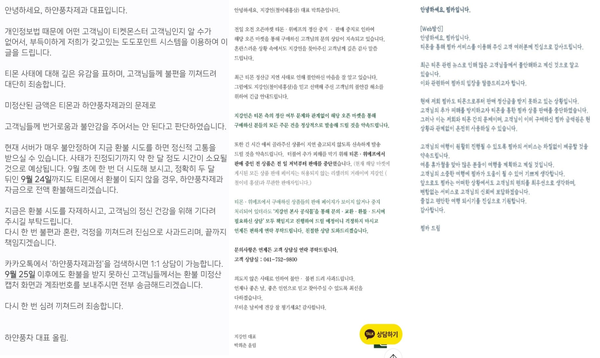 그러면서 “두 달 뒤인 9월 24일까지도 환급받지 못한 고객님들은 환급 미정산 캡처 화면과 계좌번호를 보내주시면 전부 송금해드리겠다”라고 약속했다.