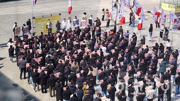 크루유니언 집회 현장 = 현기호 기자 촬영